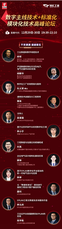 EPLAN作為在電氣工程、自動(dòng)化、機(jī)電一體化三大專業(yè)領(lǐng)域提供專業(yè)工程軟件和咨詢服務(wù)的全球領(lǐng)導(dǎo)者,堅(jiān)持從群眾中來到群眾中去,致力于為各位朋友打造一場(chǎng)專屬我們行業(yè)的直播盛會(huì),12月29日-30日線上直播讓各位充分領(lǐng)略工程制造領(lǐng)域新技術(shù)、新理念的魅力!