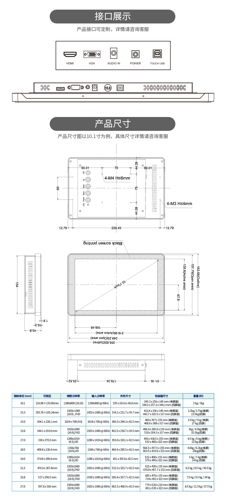 10.1寸-27寸廠家直批工控顯示器 防塵嵌入式工業(yè)顯示器