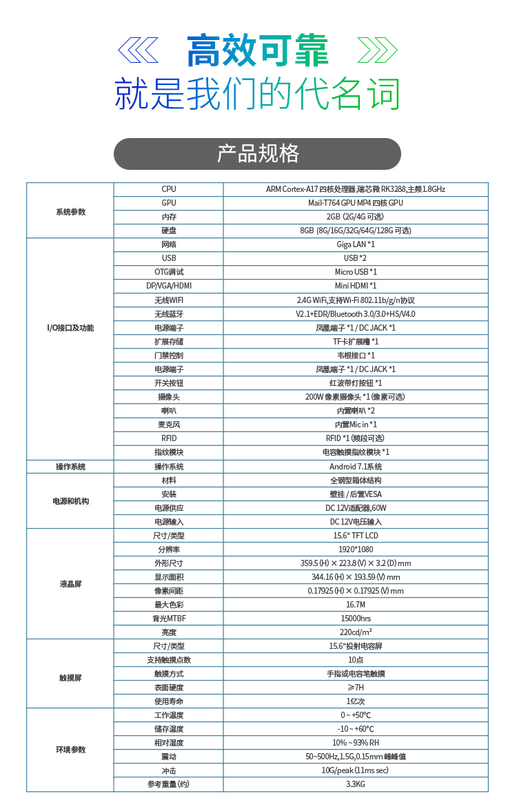 詳細(xì)信息 {安卓一體機(jī)}外觀優(yōu)點(diǎn):ABS前面框+鈑金件烤漆后殼,前面框ABS設(shè)計(jì),主要是讓RFID(刷卡)信號(hào)不要被金屬類所干擾,ABS面板采用高溫抗UV油漆,延緩ABS黃化;鈑金件后殼設(shè)計(jì),主要是考慮到壁掛式承重能力,使產(chǎn)品更加堅(jiān)固耐用。