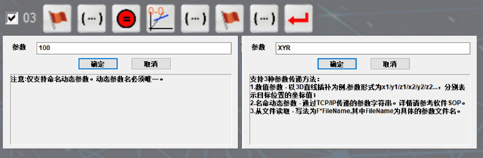 02程序:通知事件1有效,延時(shí)后發(fā)出通信指令rofA0A100000A-100000,其中A為間隔符,由視覺(jué)軟件設(shè)置。