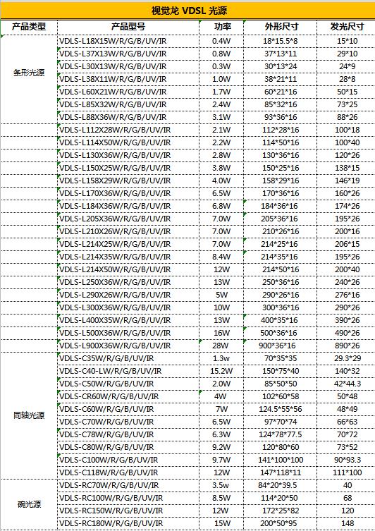 備注:其他更多詳細(xì)型號(hào)可與深圳視覺(jué)龍聯(lián)系或登錄視覺(jué)龍官網(wǎng)http://www.vdgood.cn