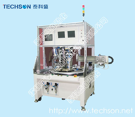 3) 放料、焊接、取料三個(gè)工位、平臺(tái)旋轉(zhuǎn)工作方式,只需人工放料,自動(dòng)完成焊接和取料至流水線上。